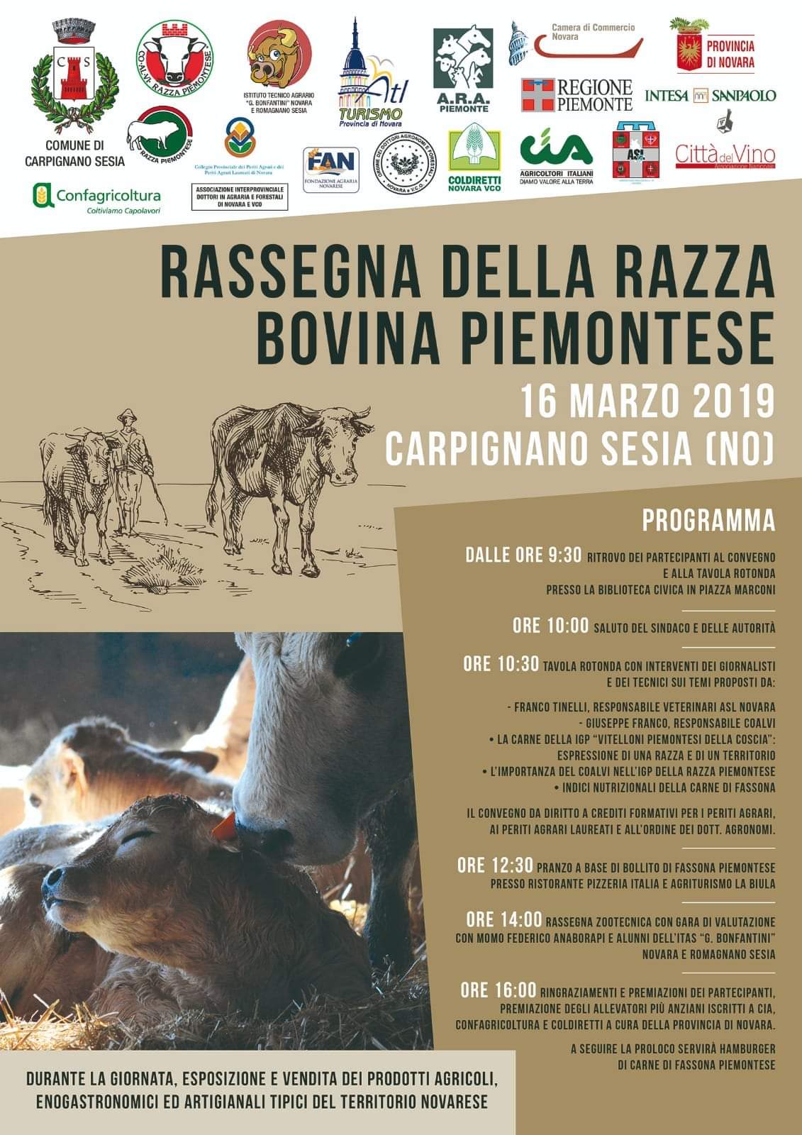 Sabato 16 marzo, nel Comune di Carpignano Sesia, si svolgerà una giornata di esposizione della razza bovina piemontese.